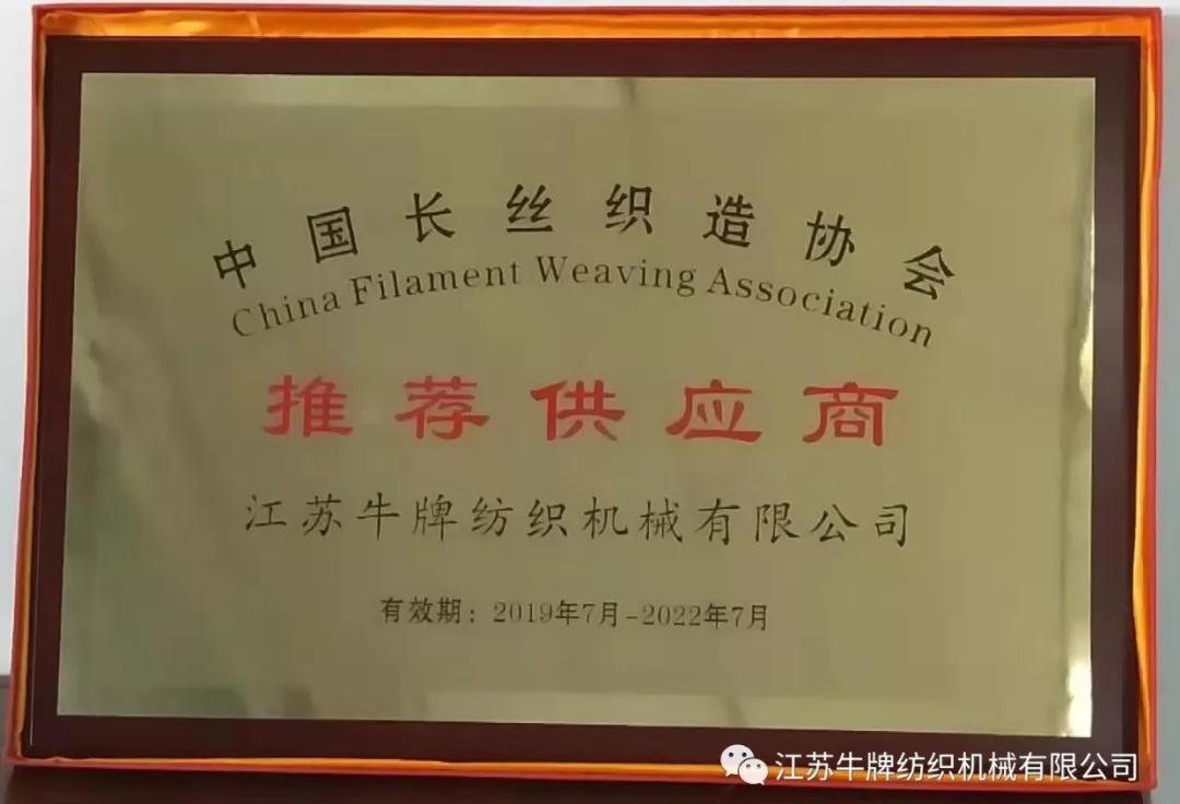 通過協(xié)會專家組考評、推薦和網(wǎng)上公示等考核結(jié)果,江蘇牛牌紡織機(jī)械有限公司被列為首批“中國長絲織造協(xié)會推薦供應(yīng)商”